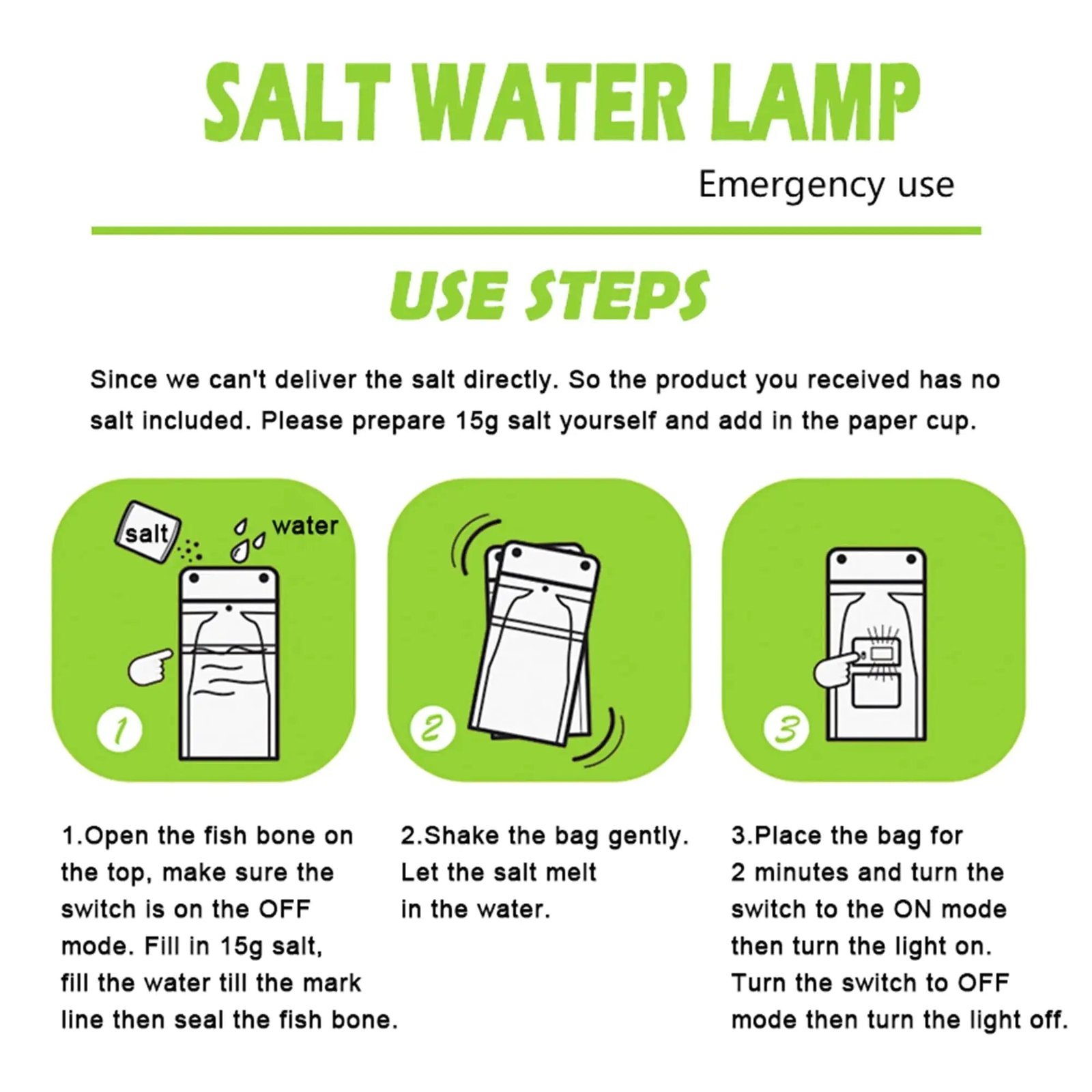 Versatilidad Increíble: ¿Agua del grifo? ¿Agua de mar? ¡Incluso orina! No importa el tipo de agua, la Luz Mágica Salina se adapta y brilla con fuerza. Añade un poco de sal y verás cómo se intensifica la luz. ¡Es como magia!
