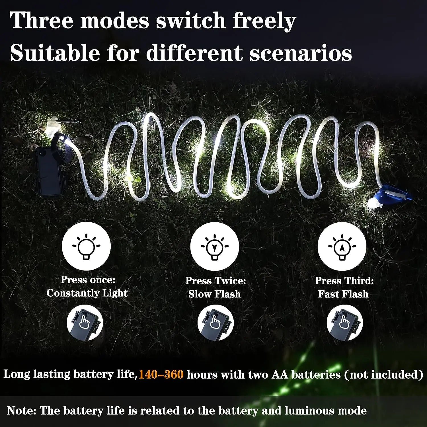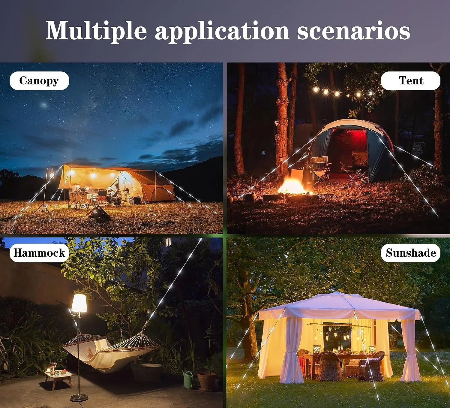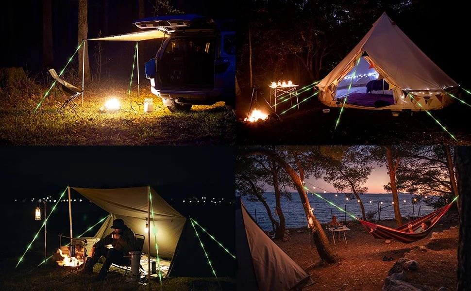 ¡Haz que cada noche al aire libre sea segura y luminosa con nuestra cuerda de luz LED para tiendas de campaña! ️✨