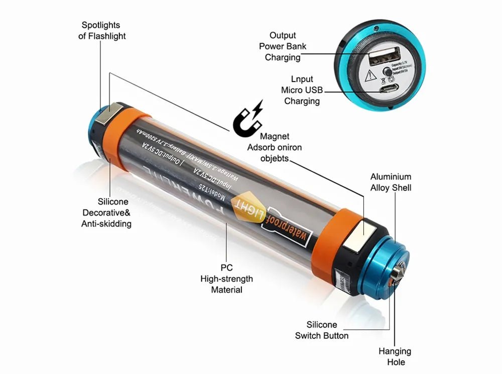 1. Estándar Impermeable de Grado de Buceo (IP68): No te preocupes por las salpicaduras accidentales. Esta linterna es perfecta incluso para fotografía submarina, con una profundidad de uso de hasta 3 metros. Además, flota en la superficie del agua, ¡así que no la perderás!