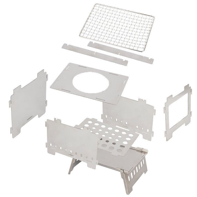 El cuerpo del fogón está hecho de acero inoxidable 430, mientras que la rejilla para asar es de acero inoxidable 304, garantizando durabilidad y resistencia al calor. Además, viene con una bolsa de almacenamiento de tela Oxford, perfecta para mantener todo organizado y protegido.