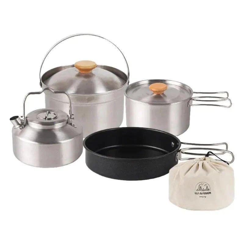 Imagina estar en medio de la naturaleza, rodeado de paisajes impresionantes, y poder preparar una comida deliciosa con facilidad. Este set de cocina de acero inoxidable no solo es duradero y resistente, sino que también cuenta con un diseño moderno y sencillo que se adapta a cualquier estilo de vida aventurero. Con perillas de madera que añaden un toque rústico y elegante, cada pieza está diseñada para ser práctica y funcional.